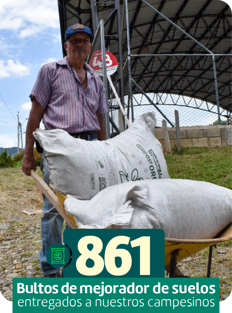 El material orgánico recolectado es transformado en aprovechador de suelos, mismo que es entregado a nuestros campesinos para su aprovechamiento en sus cultivos, muchos de los cuales son nuevamente traídos al mercado local para su comercialización y dando inicio a un ciclo de economía circular.